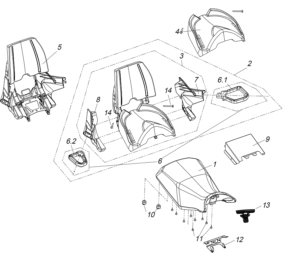 Сидение заднее в сборе с поручнями Stels Guepard LU080938