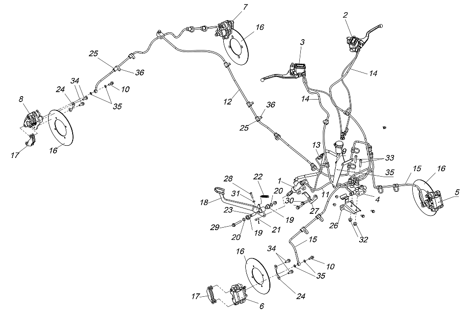 Тормозная система Stels Guepard 2.0 в сборе LU078440