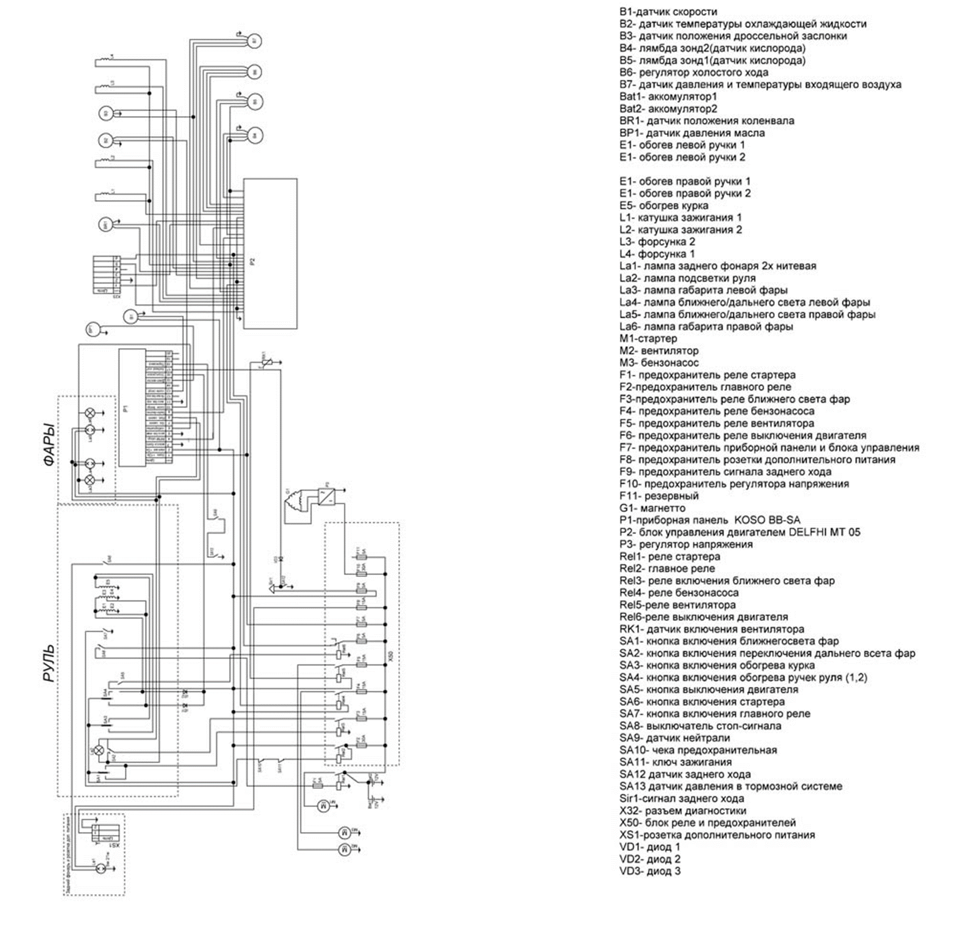 STELS S800 Росомаха (Схема электрооборудования панель приборная 380100-800-0000)