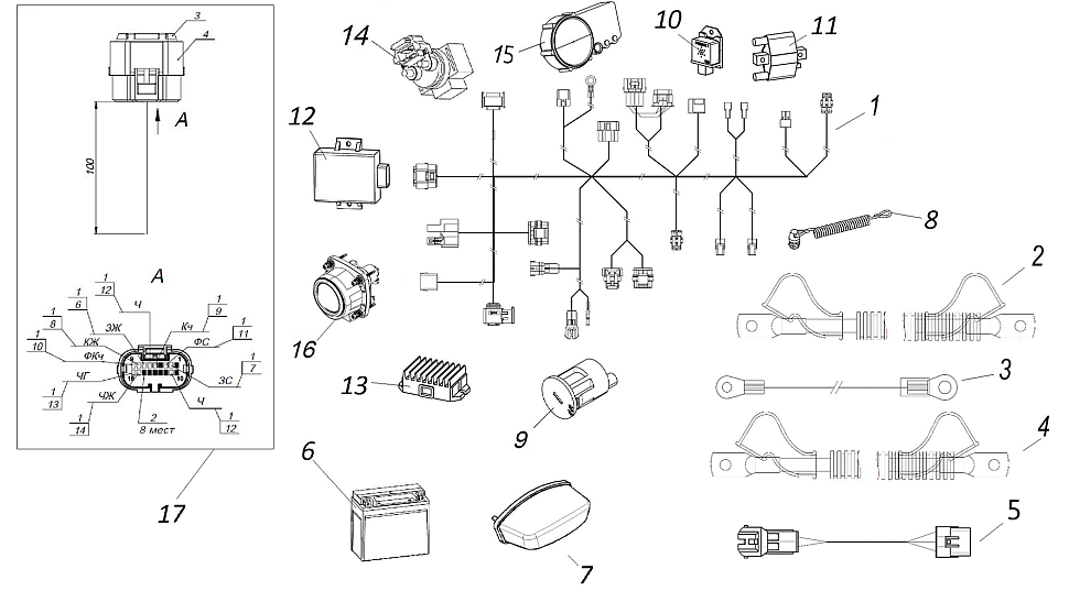 Жгут задних фонарей снегоход Stels LU060700 LU091948